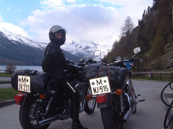 Switzerland through the Alps to Italy. The biker salutations accompanying