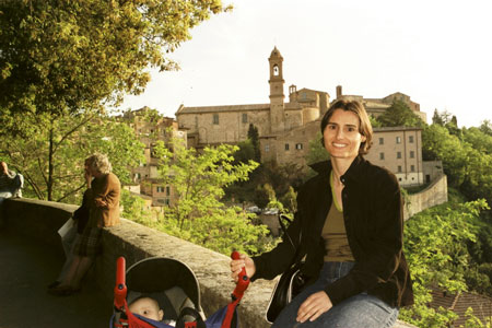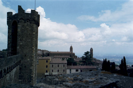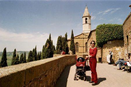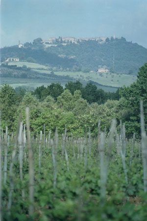 May 14 - 19, 2003 The Wonderful Landscape of TuscanyWhereever you look, there are nothing but great views, beautiful hill with ancient villages on top, curvy roads (where were our motorcycles?), and vineyards (and olive orchards - they say. We haven't seen any, but at least we bought some olive oil along with the many bottles of wine -> check http://www.crociani.it/ ).